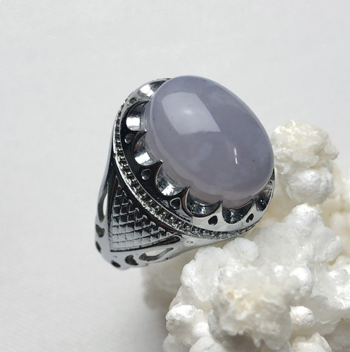 انگشتر بدل نقره با نگین عقیق یاسی طبیعی