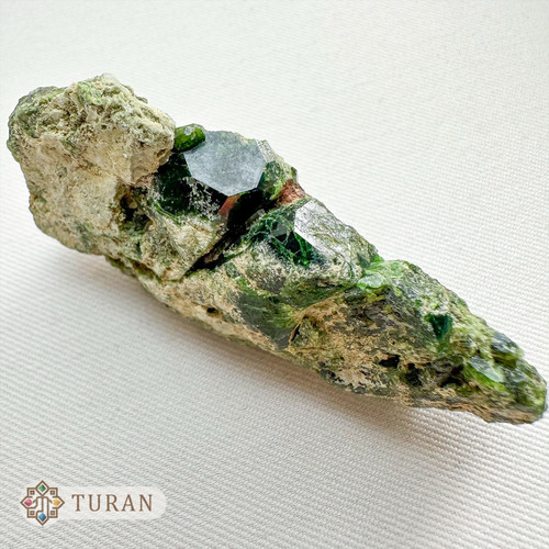 بلور گارنت دمانتوئیدی روی بستر طبیعی 25 گرم