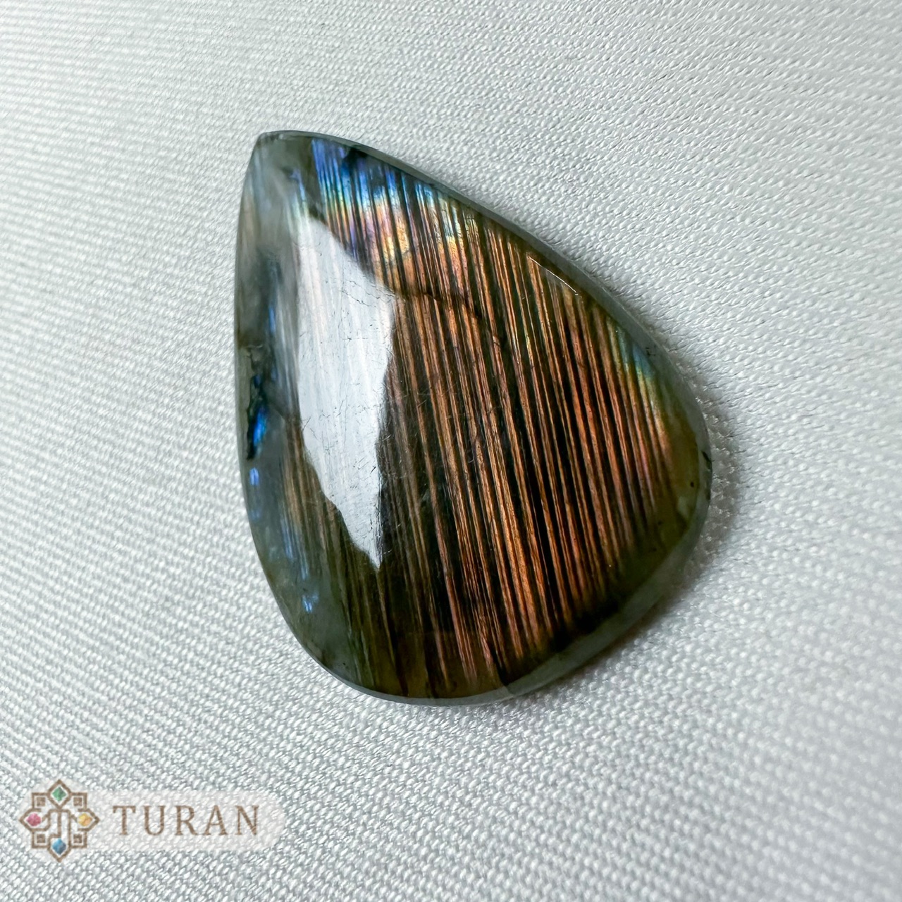 نگین لابرادوریت تراش اشکی با پدیده لابرادورنسی طلایی