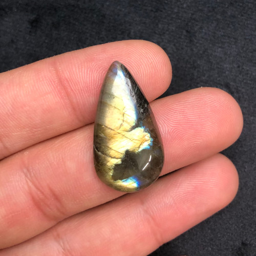 نگین سنگ لابرادوریت تراش اشکی با پدیده لابرادورنسی ابی