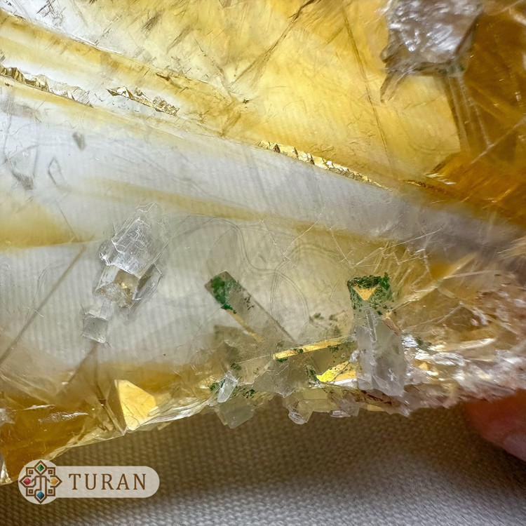 سنگ راف ژیپس طلایی با همرشدی سلستین و مالاکیت کلکسیونی 82 گرم