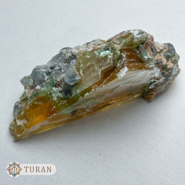 سنگ راف ژیپس طلایی با همرشدی سلستین و مالاکیت 210 گرم