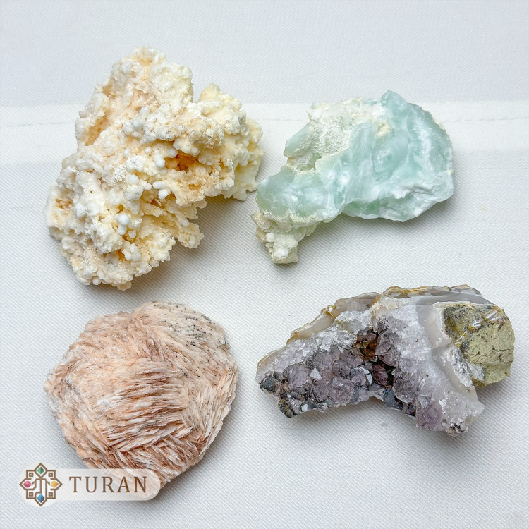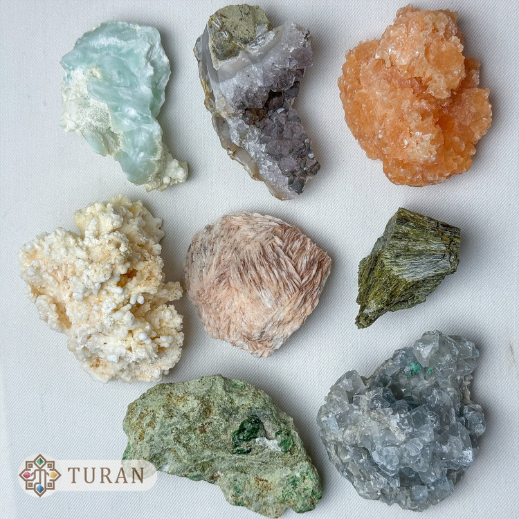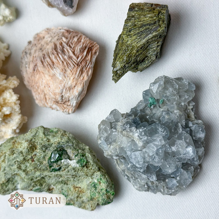 مدلگارنت.اپیدوت دم جاوریی.سلستین.ژیپس نارنجی.آراگونیت.آراگونیت آبی.باریت.آمیتیست
