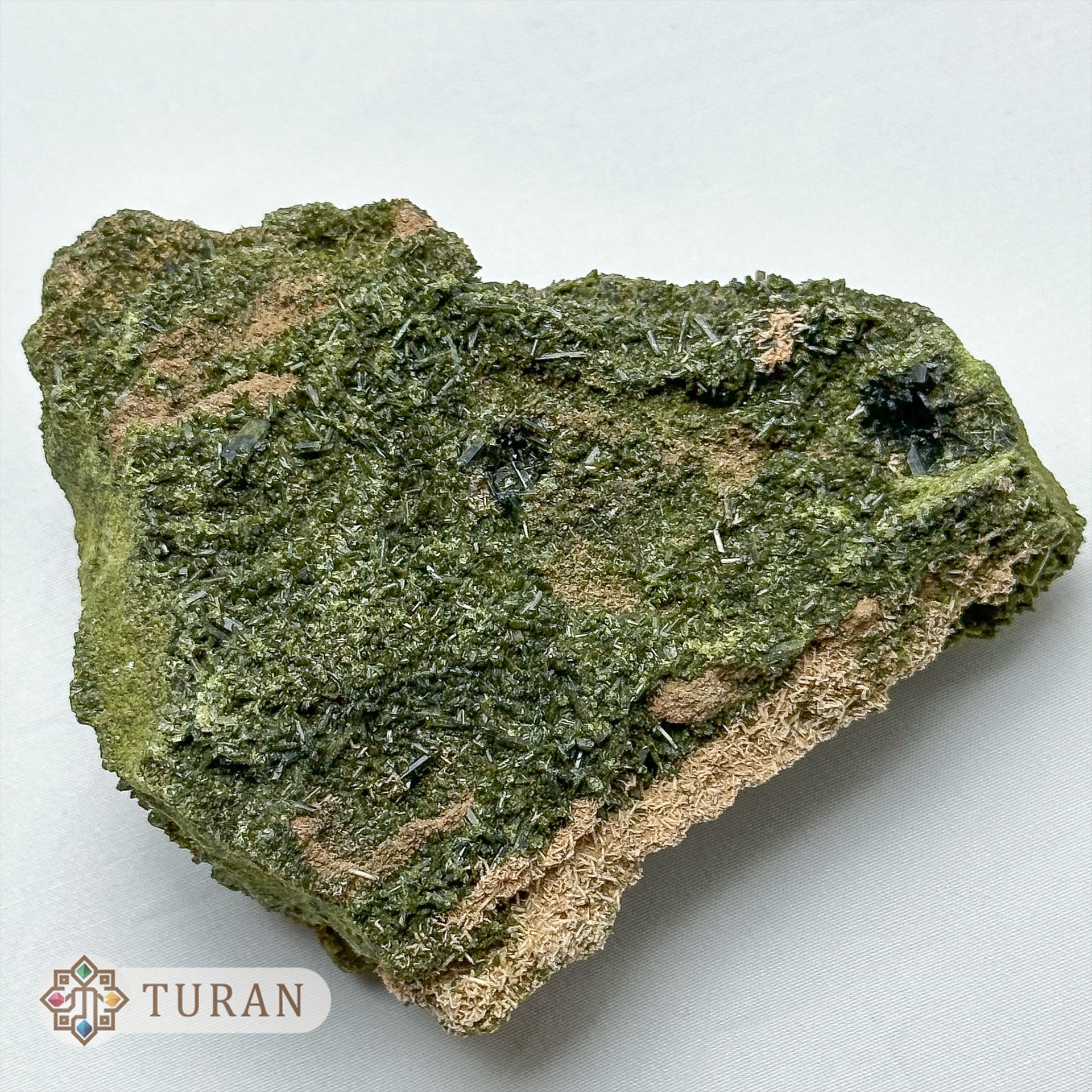 سنگ اپیدوت چمنی با همرشدی کوارتز سوزنی 290 گرم