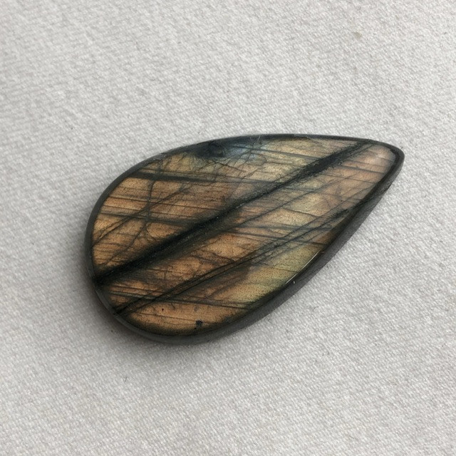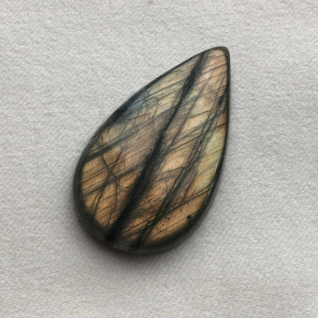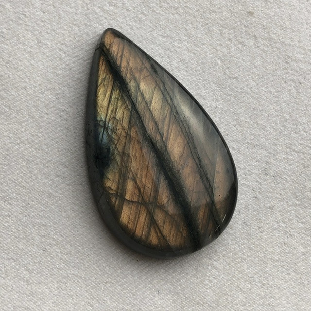 نگین لابرادوریت به وزن ۱۱ گرم کیفیت درجه یک و با تلاتو خیلی قوی طلایی رنگ تراش اشکی مناسب مدال به ابعاد ۴ سانتی متر در ۲.۴ سانتی متر سنگ شانس و ارزو ها