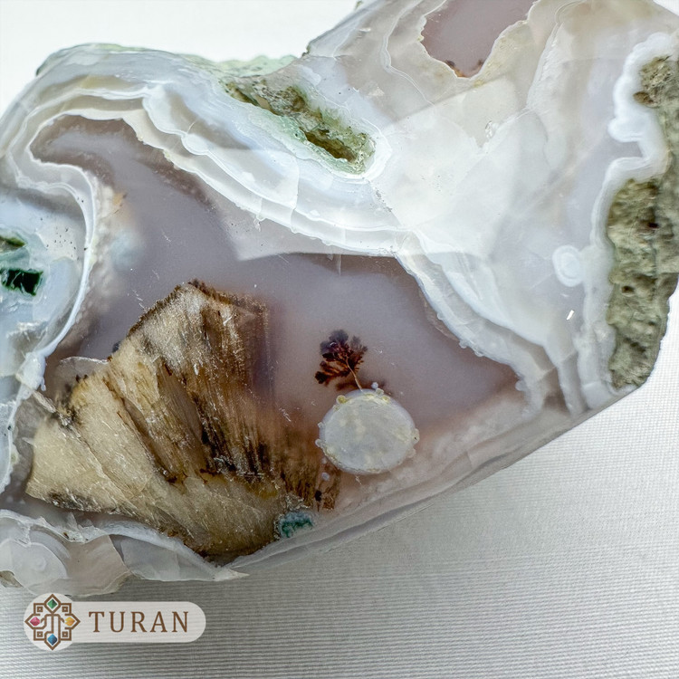 عقیق سلیمانی پولیش شده همراه شجر سیاه 136 گرم
