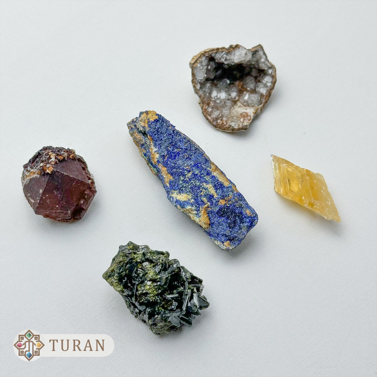 مدل: کلسیت طلایی-آزوریت-اپیدوت-کوارتز هماتوئیدی ژئود کوارتز