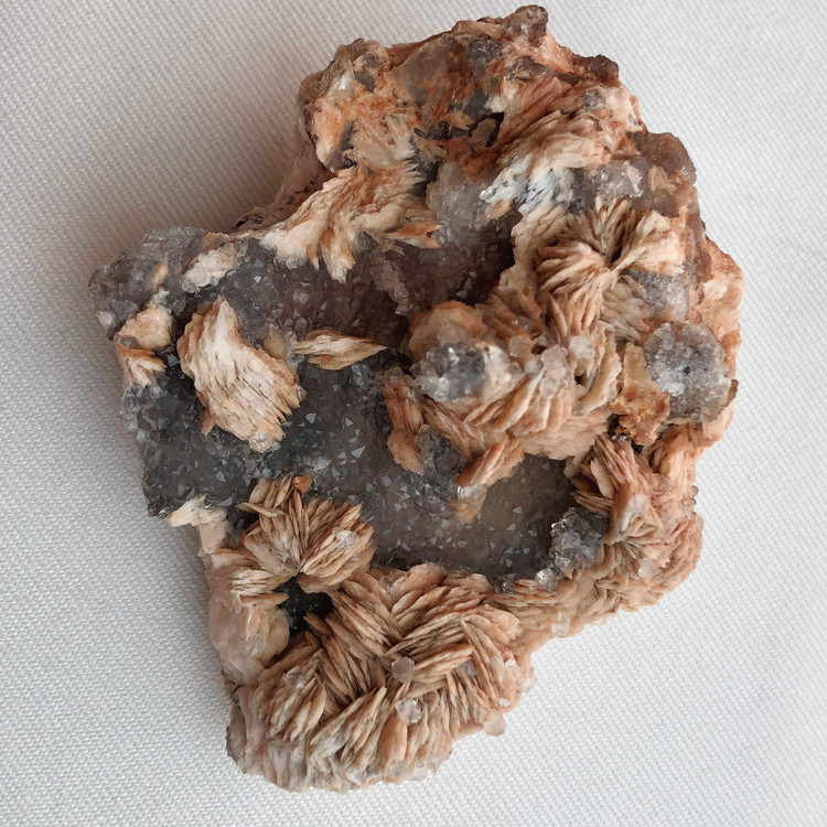 سنگ باریت صورتی با همرشدی کوارتز دودی 124 گرم