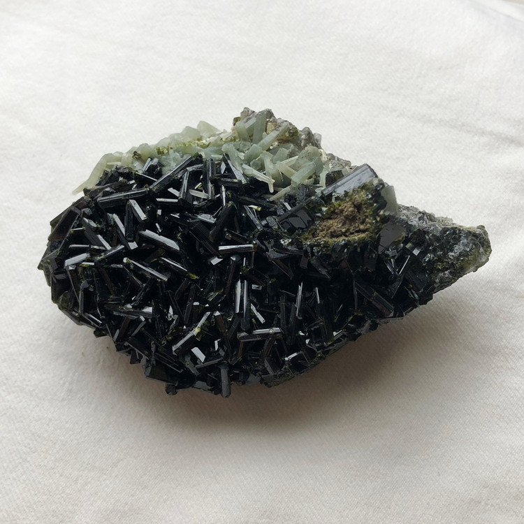 سنگ اپیدوت با همرشدی کوارتز سوزنی نمونه با بلور های سالم