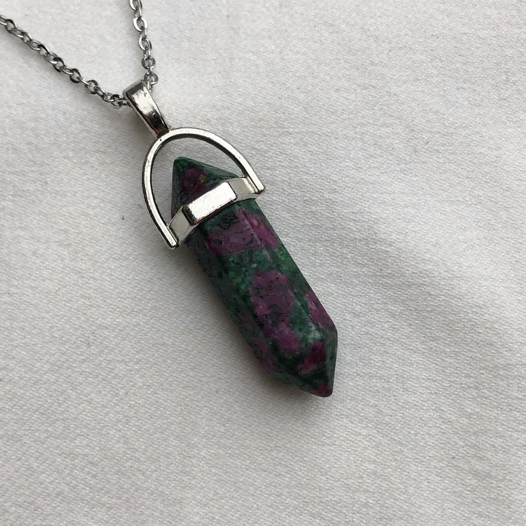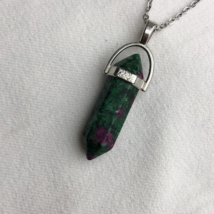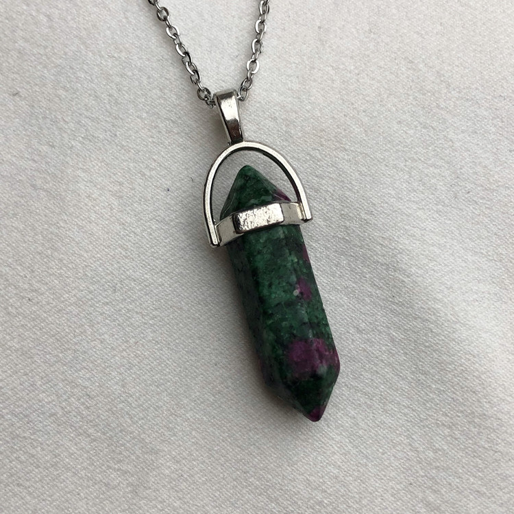 مدال اویز منشوری سنگ روبی زئوسیت طبیعی به رنگ سبز و قرمز