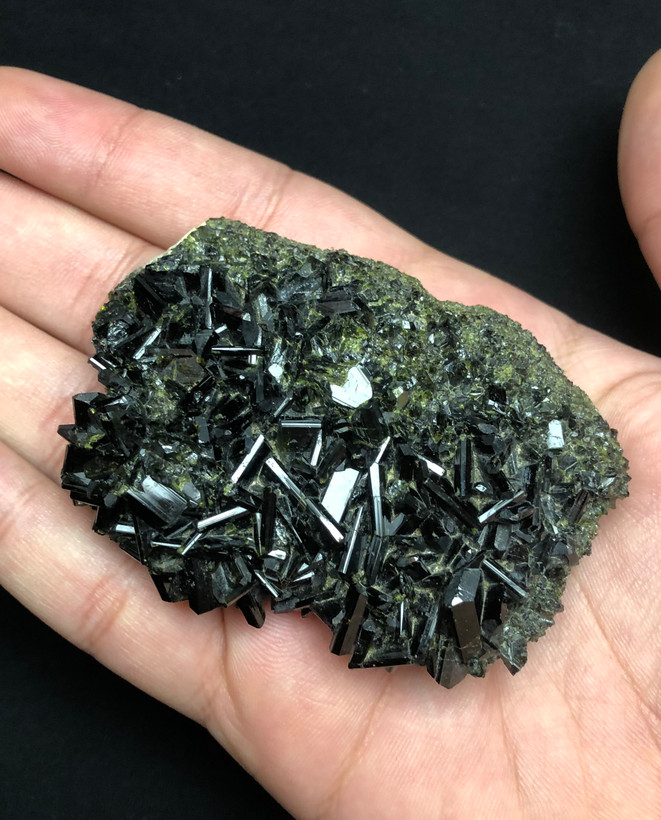 سنگ کلکسیونی اپیدوت پر بلور و مشکی