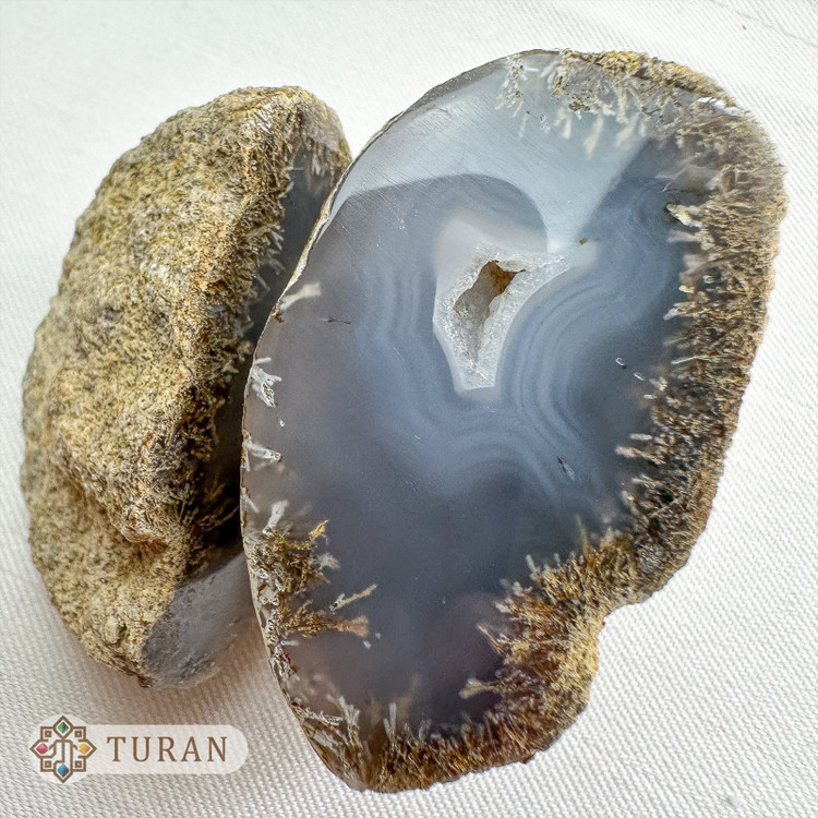 سنگ عقیق توپی مویی ژئود دار پولیش شده طبیعی و کلکسیونی 130 گرم